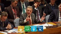 Während ihrer Mitgliedschaft im Sicherheitsrat ist die Schweiz insbesondere darauf bedacht, dass die verabschiedeten Resolutionen das humanitäre Völkerrecht vollumfänglich einhalten. Sie achtet darauf, dass dessen Verbindlichkeit nicht untergraben wird, und betont, wie wichtig es ist, Rechenschaft abzulegen.
