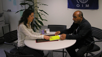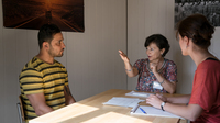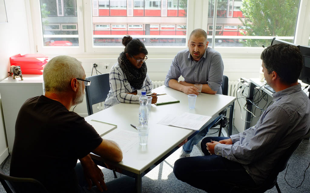 Guarda il film «Audizione per l'asilo». Nel centro di accoglienza, ogni persona viene ascoltata in uno o più colloqui. Di solito sono presenti quattro persone durante l'udienza. Tale audizione è il fulcro della procedura di asilo. Annota gli obiettivi e i compiti che le persone presenti hanno durante questo colloquio. Ulteriori informazioni sul colloquio d'asilo sono disponibili anche online.