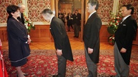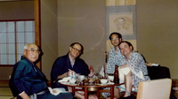 Cornelio Sommaruga cun diplomats en ina chasa da té tradiziunala a Kyoto, Giapun, 1985