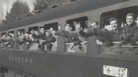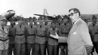 Il cusseglier federal Karl Kobelt cun appartegnents da l'armada avant lur engaschament en Corea, 1953