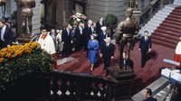 La first lady dals Stadis Unids da l'America Hillary Clinton davant il Palais Wilson a Genevra, 1998