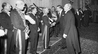 Corp diplomatic ester en SvizraBainvegni da Bumaun cun il president da la Confederaziun Max Petitpierre, 1950