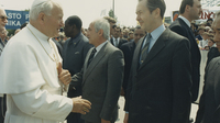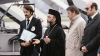 Il nunzi Edoardo Rovida cun il president da la Confederaziun Alphons Egli al bainvegni da Bumaun, 1986