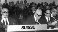 L'ambassadur Rudolf Bindschedler a la testa da la delegaziun svizra 1980